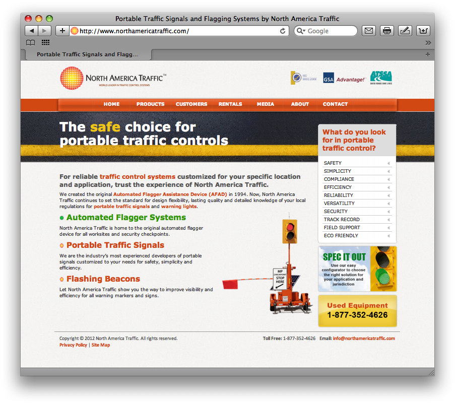 London, ON – A new website for North America Traffic, the Ontario-based manufacturer of portable traffic signal and flagging equipment, succeeded in stopping judges in their tracks for the 2012 Summit Creative Awards.