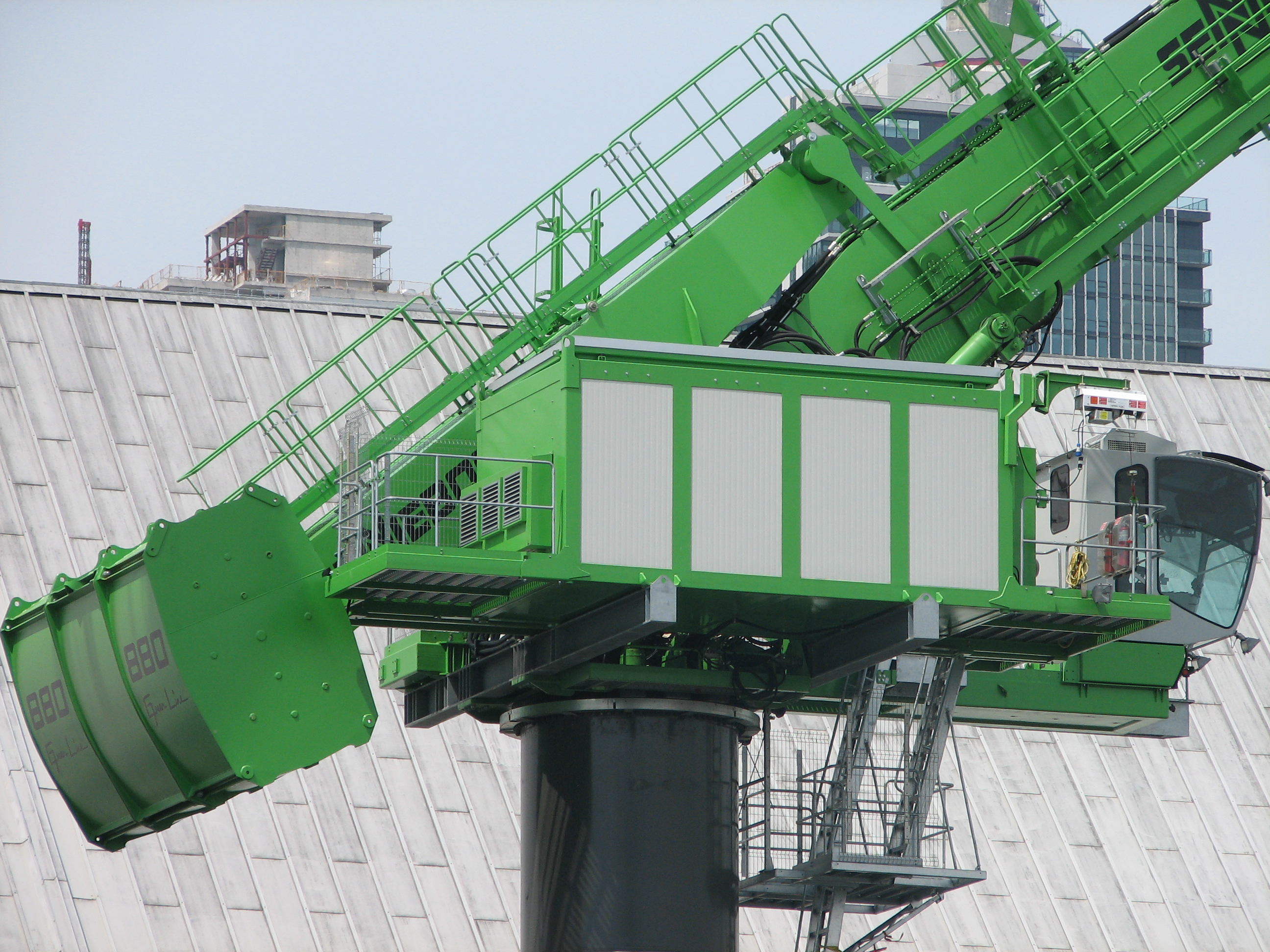 The SENNEBOGEN 880 EQ at the Redpath Sugar loading facility will unload ships 50% faster than the two rope cranes it is replacing.