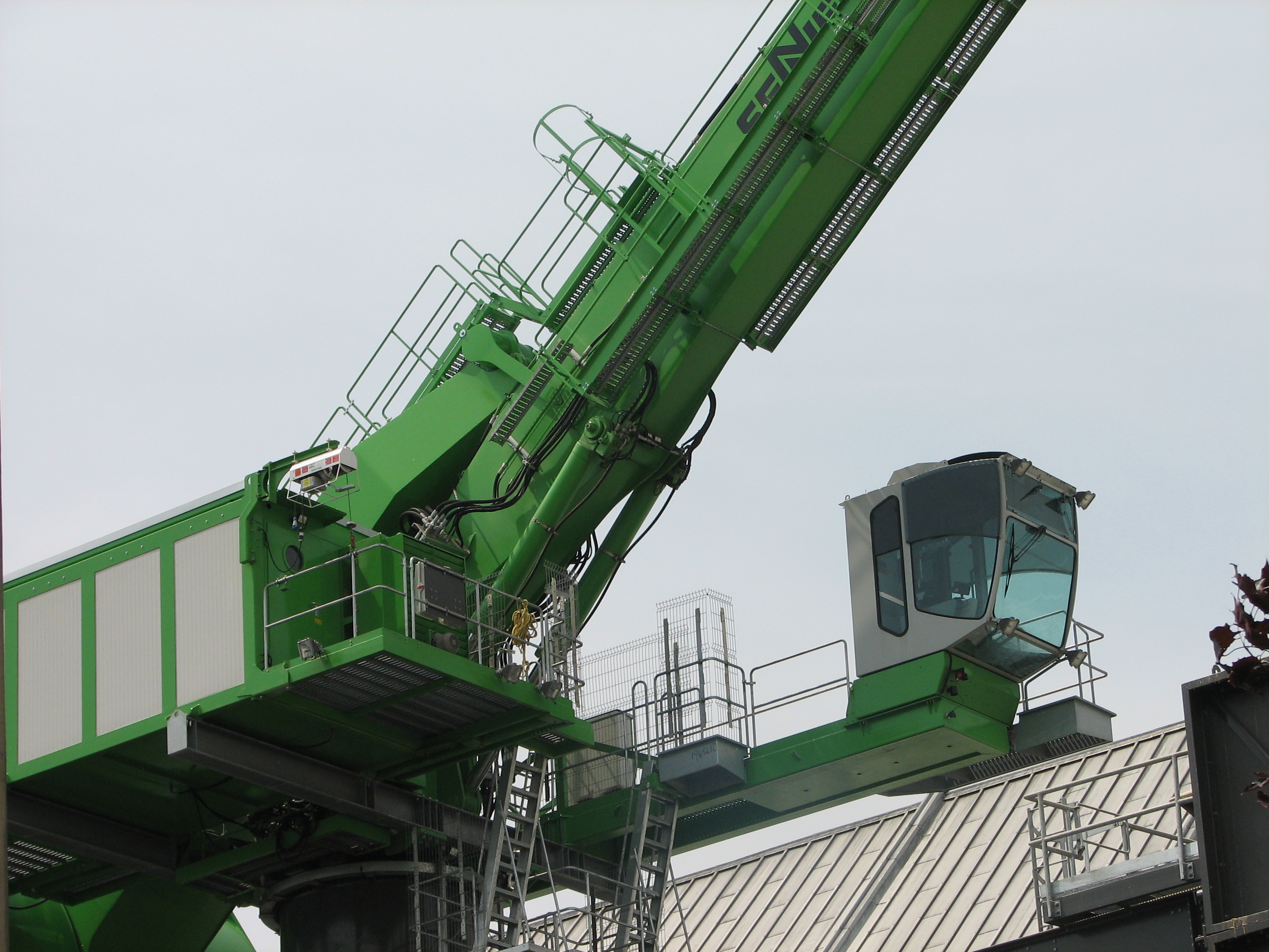 The cantilevered mount of SENNEBOGEN’s Harbor Cab provides operators with a direct view into the hold of sugar-laden ships.