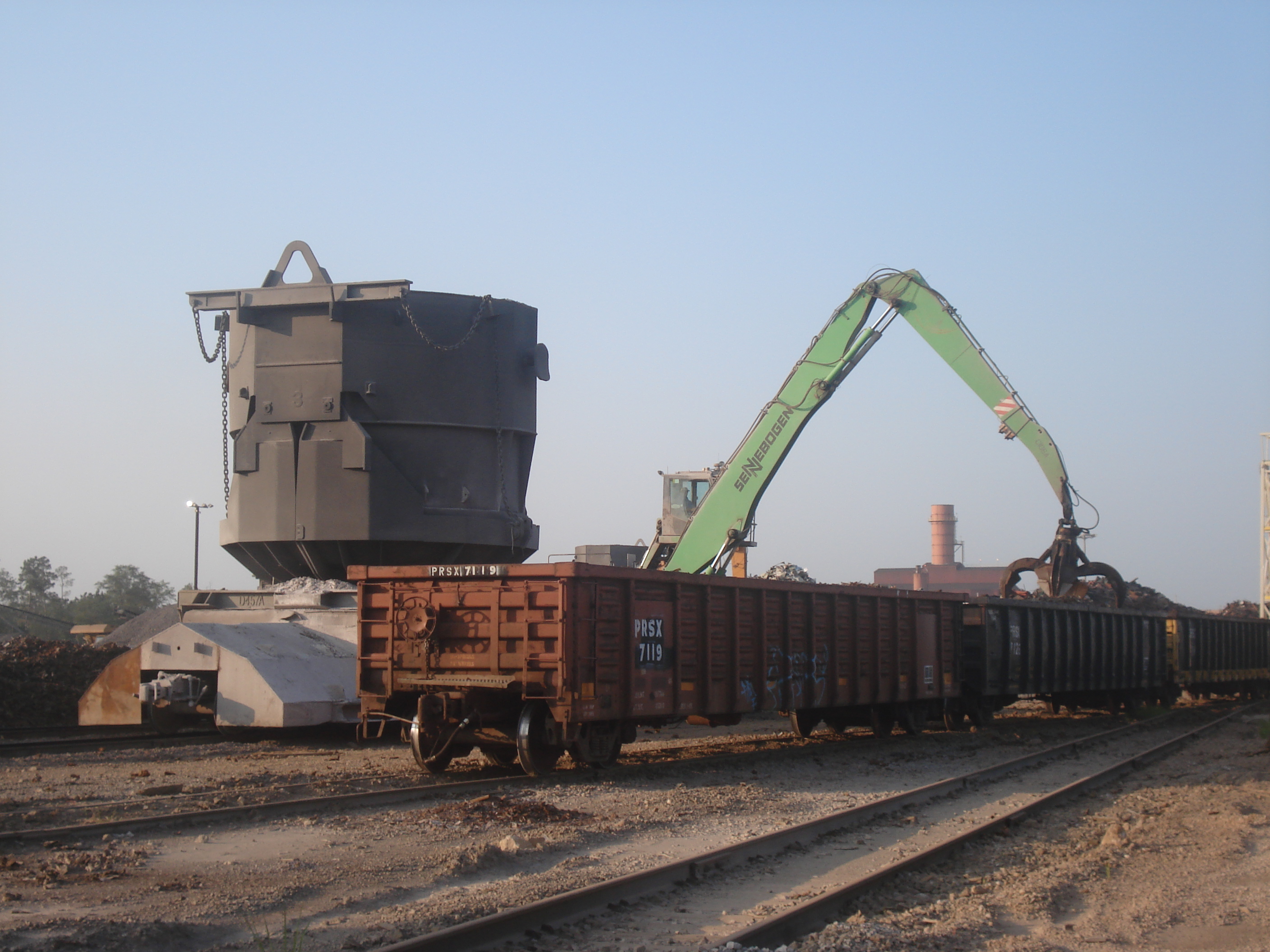 AXIS, AL – Since going into operation in 2007, the SENNEBOGEN 850 locomotive units at the Axis location of Tube City IMS (TCIMS), one of the world’s leading steel services organizations, have seen an impressive 15,000 hours of service. Working in conjunction with other rubber-tired SENNEBOGEN machines – 850 M and 870 M – the two locomotive units charge buckets for the site’s melt shop and have played a major role in maximizing the site’s production volume.