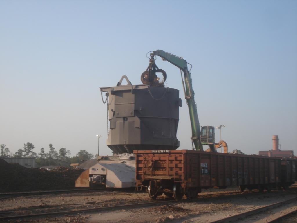 “The SENNEBOGEN 850 locomotive units’ primary purpose is to load charge buckets with scrap,” says Darrin Blount, TCIMS Scrap Yard and Dock Superintendent. “The units’ Caterpillar engines and hydraulic systems are used to move them along rail tracks within the yard. Using 2-yd grapples, the 850 special locomotive cranes usually unload scrap from rail cars directly into the charge bucket, and at other times unload it onto inventory commodity piles to be charged later. The loaded charge buckets are then shunted to the melt shop via Kress RT Pallet carriers. It’s a pretty efficient operation that allows us to process the impressive amount of material we have managed in the last two years.”